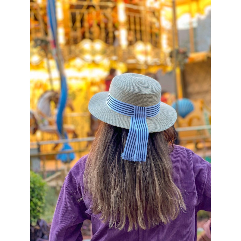 Es un clásico Canotier con ala de 7 cm. Con su cinta decorativa a rayas y su fresco diseño, este sombrero te hará verte muy atractiva. Asimismo, te estarás protegiendo de los rayos UV con su UPF 50+.